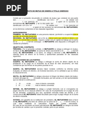 Nº cuit cuil nº con domicilio en calle de la ciudad de córdoba quien concurre en ejercicio de sus propios derechos. Acceder ahora con una cuenta 1 305 890 29 82. La ley define al contrato mutuo como un acuerdo mediante el cual una persona llamada mutuante entrega a otra llamada mutuario una cosa consumible o suma de dinero la cual debe ser devuelta en igual cantidad género y forma. Preliminar a partes entre por una parte en adelante mutuante y.