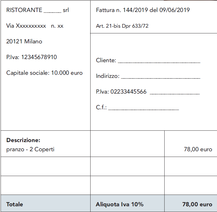 La semplicità di compilazione della e fattura semplificata trova riscontro nel limitato numero di campi da compilare nel tracciato del documento. La fattura semplificata rappresenta una soluzione caratterizzata dalla presenza di uno scarso numero di informazioni e da importi decisamente ridotti è di particolare utilità per i soggetti che lavorano in alcuni settori specifici come ad esempio può essere la ristorazione. La fattura semplificata rettificativa. In queste attività può risultare davvero utile il suo utilizzo sia per ottimizzare i tempi sia per una maggiore semplificazione della normale procedura di emissione.